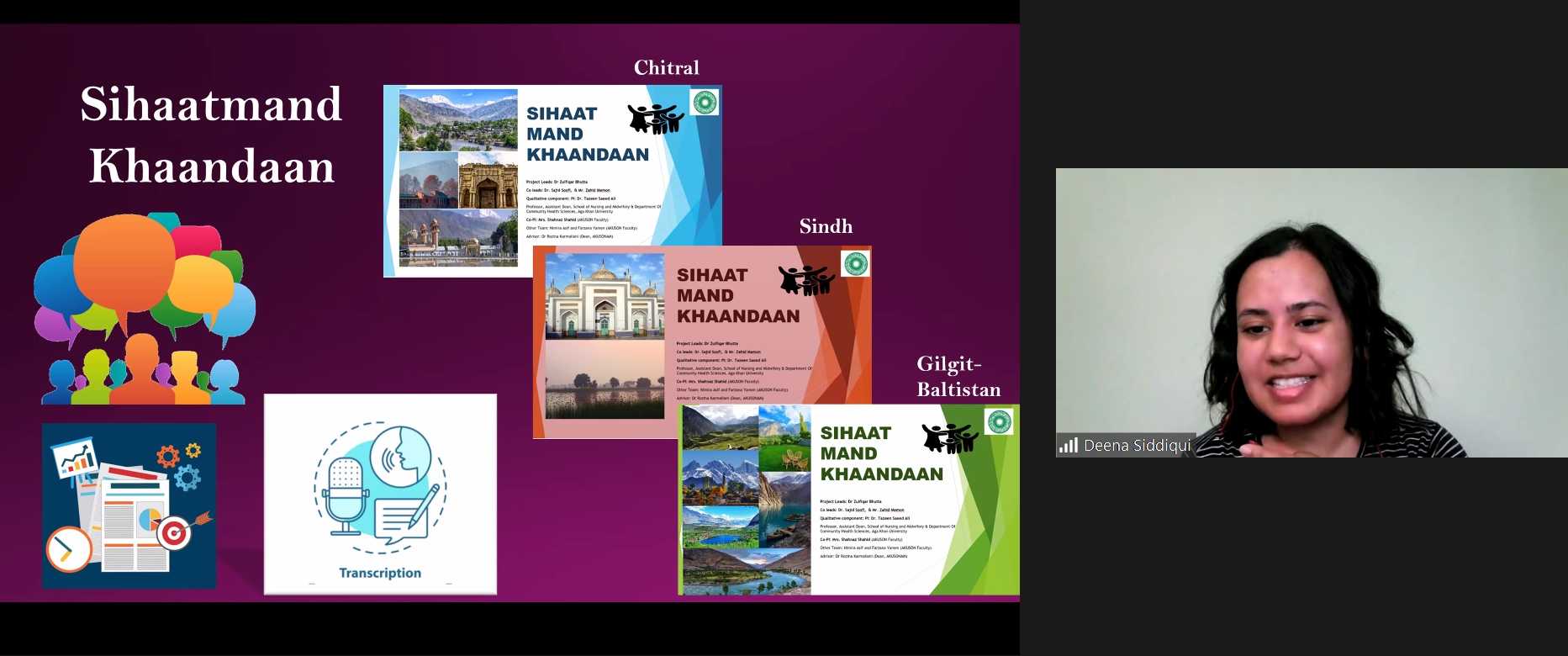 Along with my mentor, I worked on a project titled Sihaatmand Khandaan (healthy family). I read through 57 focus group discussions and 38 in-depth interview transcripts from women in Chitral, Sindh, and Gilgit-Baltistan in order to complete a 3-page executive summary and PowerPoint presentation for healthcare professionals, government officials, and policymakers in the country. This placement was also the first time I worked on a manuscript and analysed raw data.